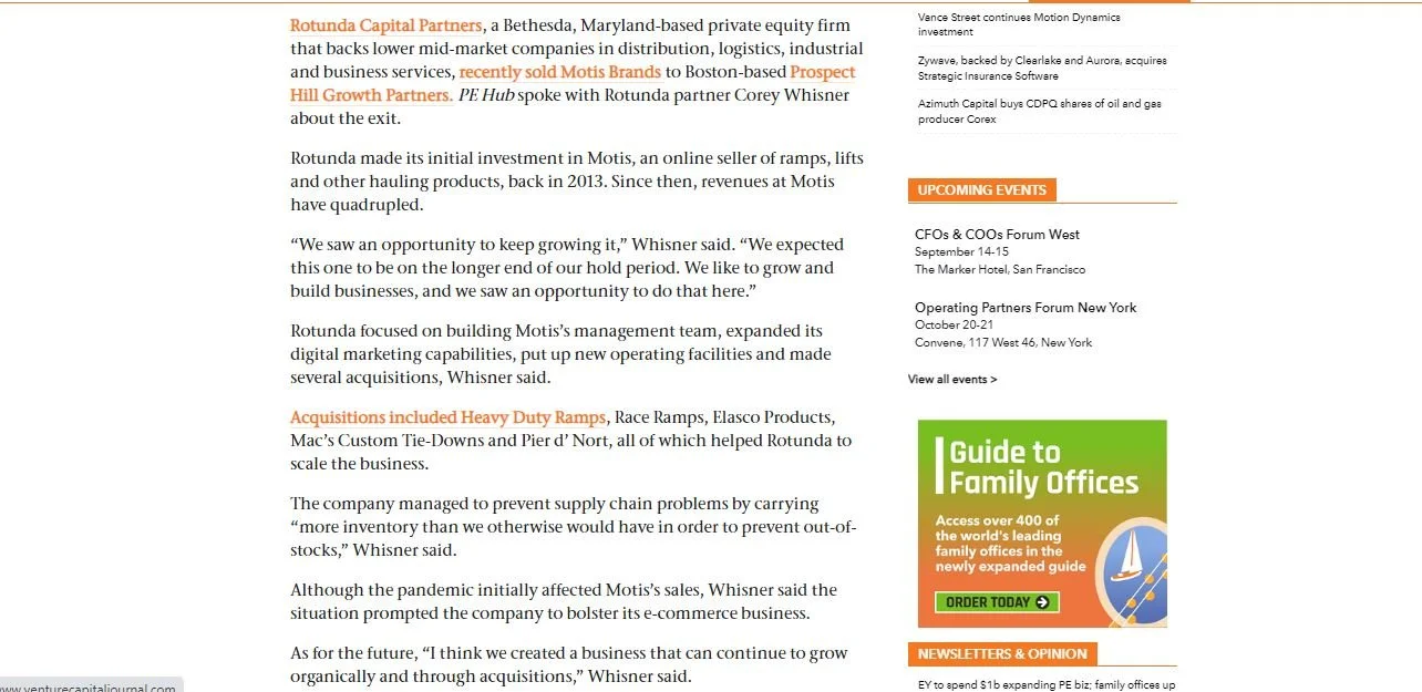 Inside the exit: Rotunda built up ramp-maker's e-commerce business Motis, in-the-newsJohn FruehwirthJune 3, 2022